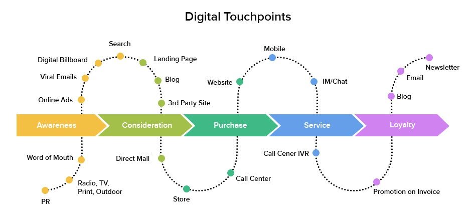 There are numerous brand touchpoints that correlate with each phase of the customers journey and encourage consumer engagement. There are five phases in which the customer journey occurs: