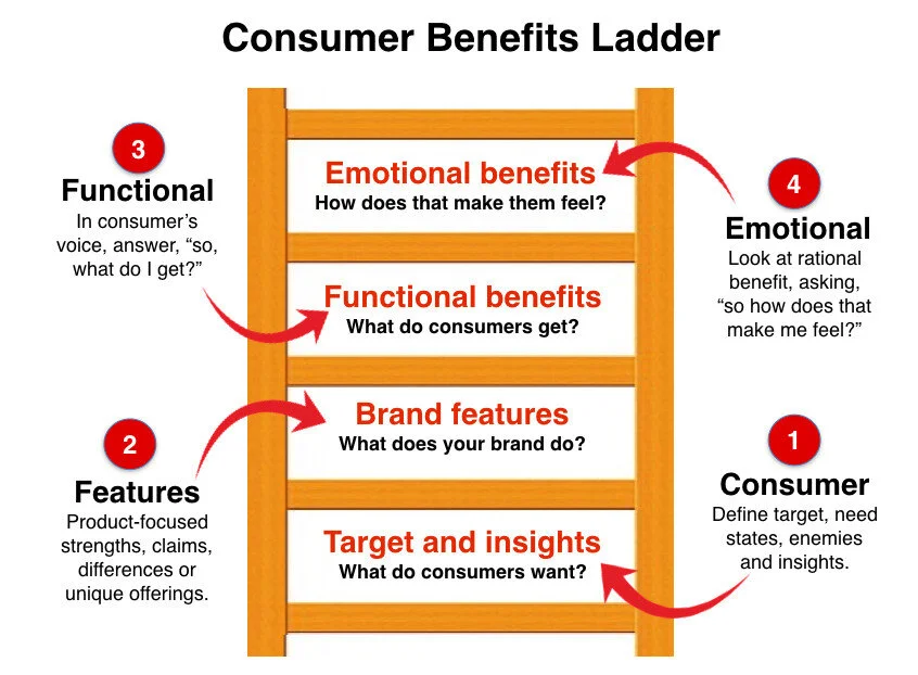 Brand benefits are based on consumer needs and the value that consumers experience as a result of using your product or service. Benefits are measured in two forms: